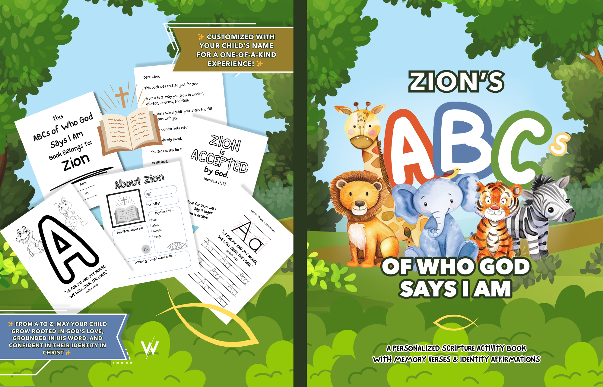 More than an ABC book, this Personalized Scripture Activity Book with Memory Verses & Identity Affirmations is a keepsake faith-building experience — thoughtfully created to help children learn their letters while growing in biblical truth, confidence, and identity.
